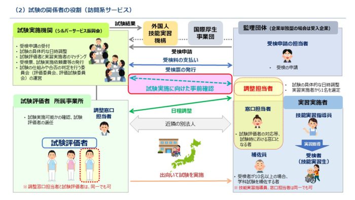 試験日時は、監理団体または実習実施者と試験評価者が所属する事業所とで調整します。